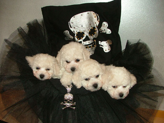 Vauvat kuvassa 6 viikkoa. Vasemmalta: W. Pirate Angel "Pepi", W. Pirate "Woody",